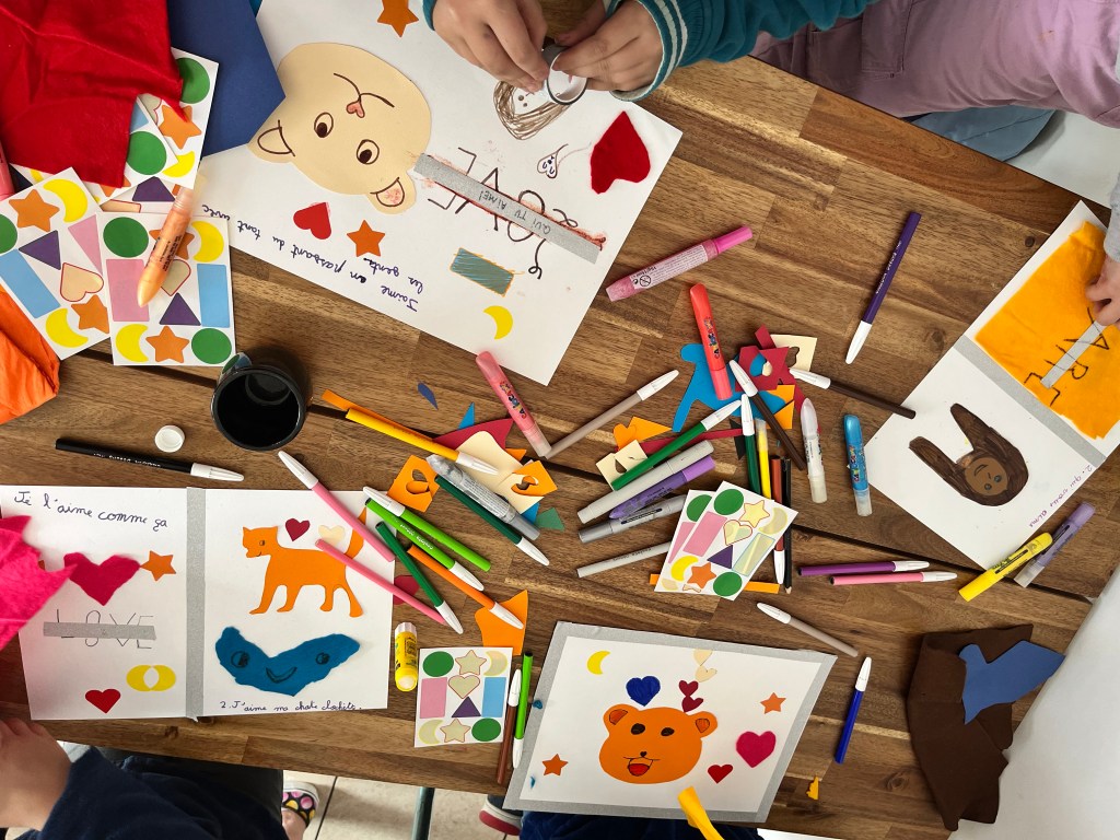 Le Cinéma Itsas Mendi à Urrugne m’a demandé d’animer un atelier artistique pour enfants (4-6 ans) suite à la projection du film “Beurk”. Par le biais de techniques créatives (collage et découpage), nous avons exploré deux questions: « Aimer, ça veut dire quoi ? » et « Qui aimes-tu ? »